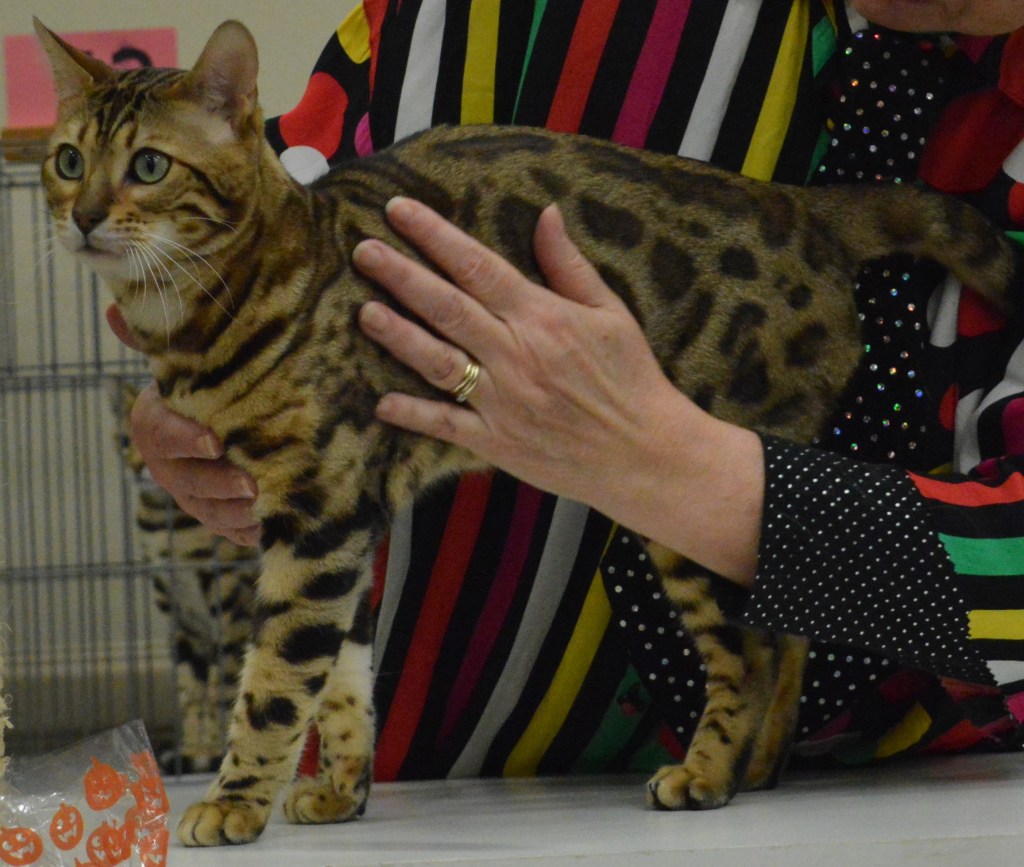 DSC_0177 Cats, like this Bengal, are evaluated by judges based on their closeness to what is considered breed perfection.